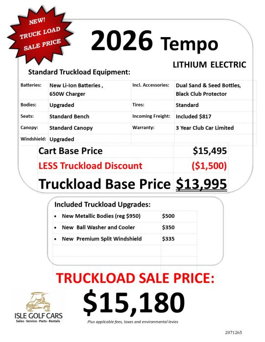 If you’re in the Parksville area, feel free to stop by to view our huge selection of golf carts.