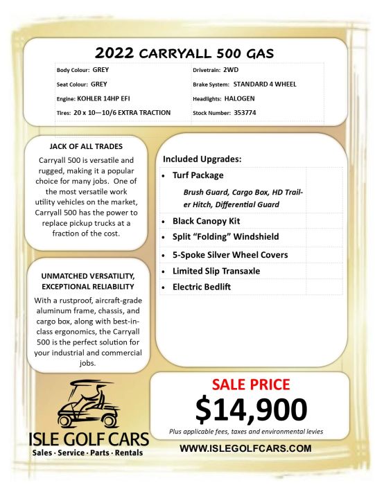 If you’re in the Parksville area, feel free to stop by to view our huge selection of golf carts.